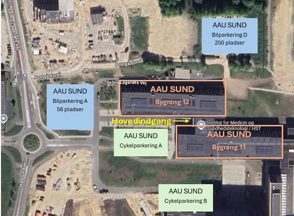 AAU SUND har adresse på Selma Lagerløfs Vej 249, 9260 Gistrup – lige ved siden af det nye hospital